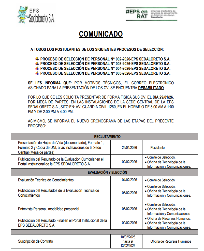 Ultima Actualización : 29 de Mayo del 2025 Entidad Prestadora de Servicios de Saneamiento de agua potable y alcantarillado de Loreto S.A.| Iquitos - Perú